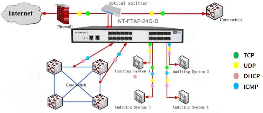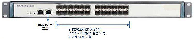 24개의 포트를 Input, Output포트로 사용자 설정을 할 수 있으며 모니터링 포트 또한 멀티모드 또는 싱글모드 광, UTP로 다양한 인터페이스를 선택 가능하다. 또한 Input포트를 통해 탭으로 연결된 모든 네트워크 데이터에 대해 필터링 기능을 통해 각각의 Output(모니터링) 포트로 전체 혹은 특정 데이터만을 보내 모니터링 할 수 있다.